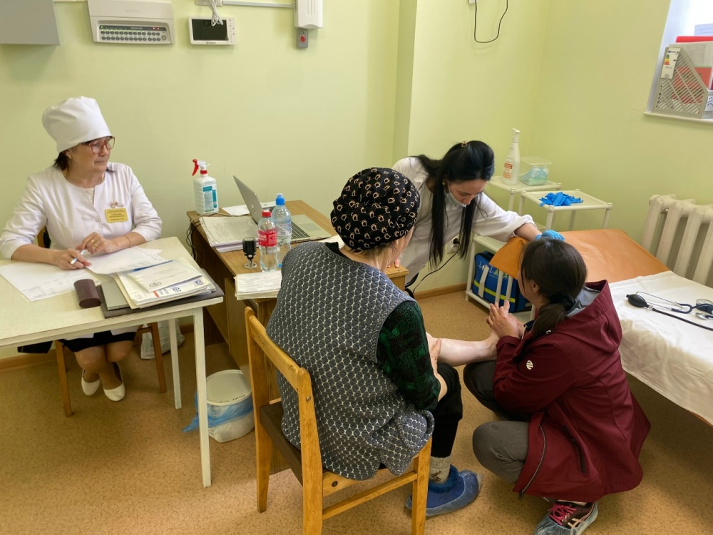 Особую атмосферу поддержки создают студенты медицинского колледжа. Ожидающим своей очереди они рассказывают о правилах здорового питания, важности соблюдения режима дня, профилактике хронических заболеваний и других темах, связанных с сохранением здоровья.